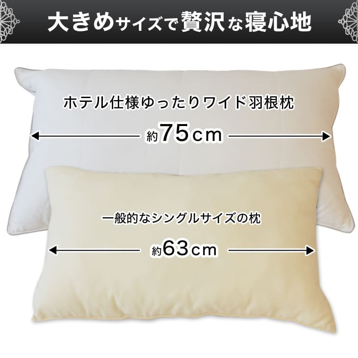 枕 | ホテル仕様ゆったりワイド羽根枕+枕カバー 45×75センチ用(枕×1、枕カバー×1のセット) 【枕/まくら/ピロー/羽/はね/フェザーホテル枕/ホテル 仕様/高級/洗える/ロング/幅広/寝返り/ふんわり/ふわふわ】【N】【futonyasan】【母の日】