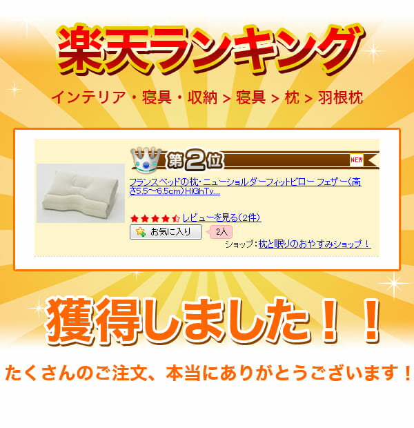 枕 フランスベッド ニューショルダーフィットピロー フェザー(高さ5.5〜6.5センチ)HiGhType (FranceBed フランスベット社製) 水鳥の羽根を使用した枕 【ギフトラッピング無料】【送料無料】【羽根 羽根枕 フェザーピロー まくら】【N】【母の日】